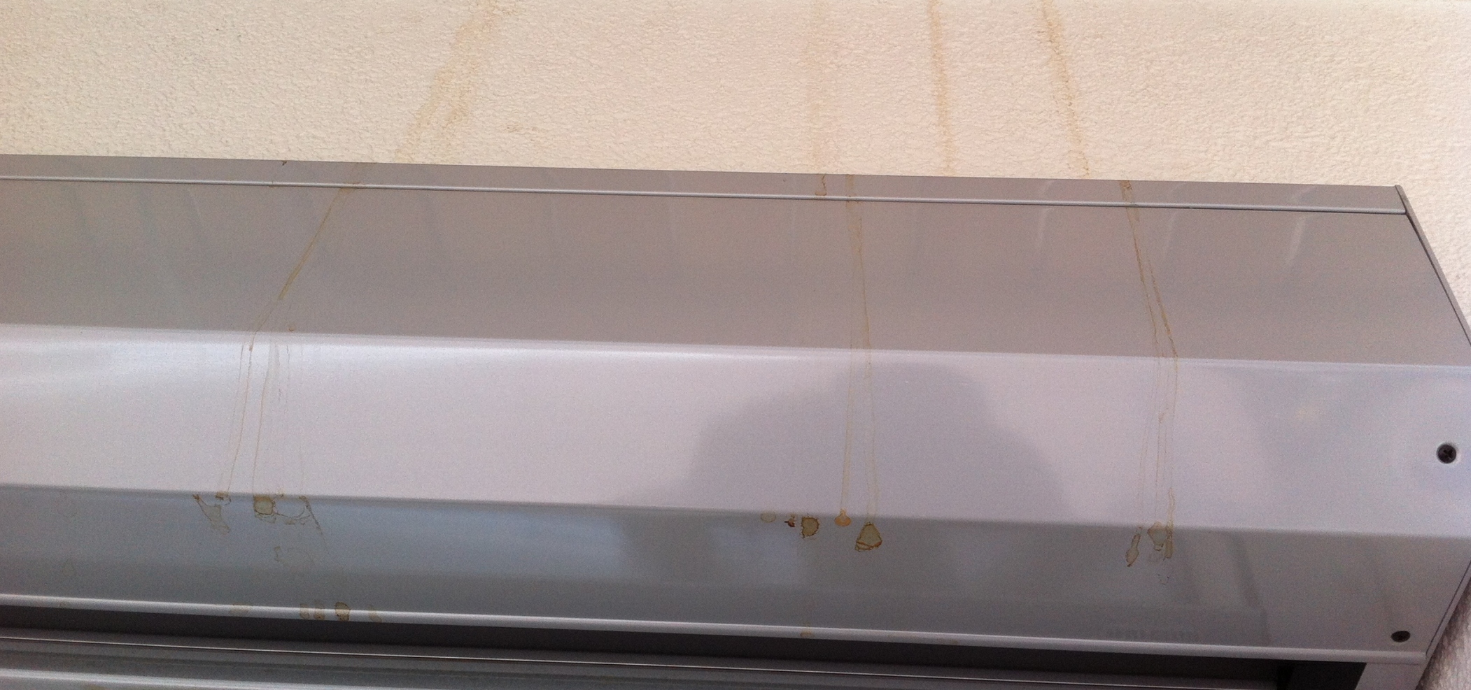 Jedesmal nach dem Regen sind braune Streifen von Unterkante Balkon, Rollokasten,Rollo bis zum Alu-Fensterbank zu sehen.