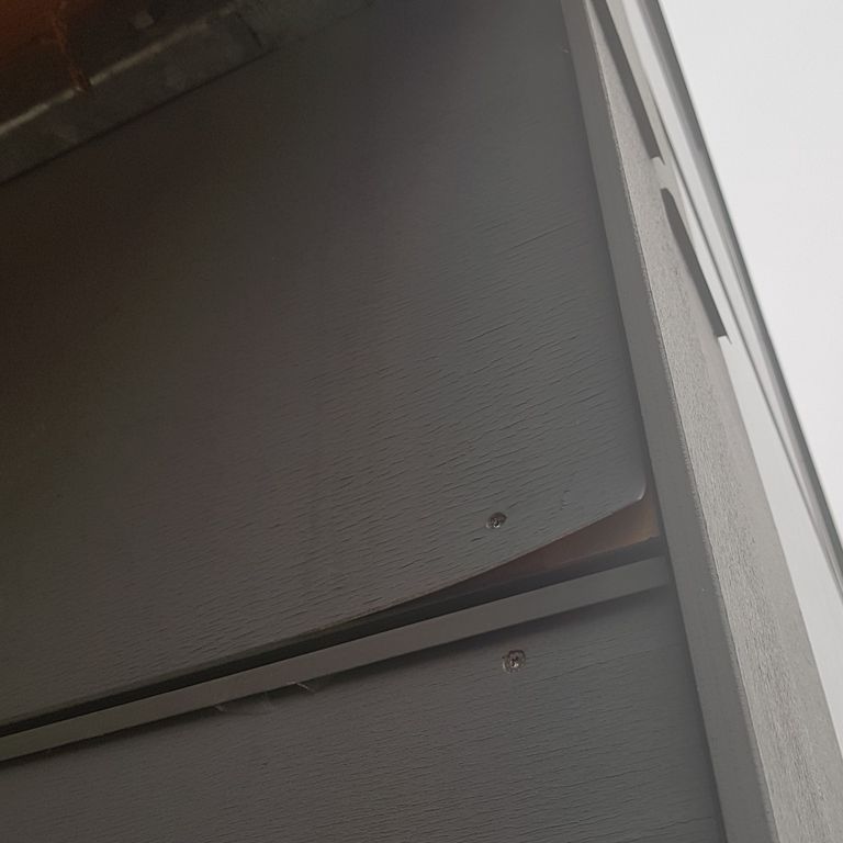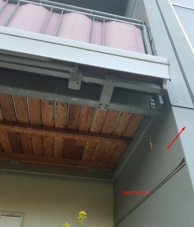 Allerdings gestaltet sich die Umsetzung schwierig, da das Balkongerüst auf der Wand befestigt ist und dadurch im Weg steht, sodass die mittlere Platte nicht ausgetauscht werden kann.